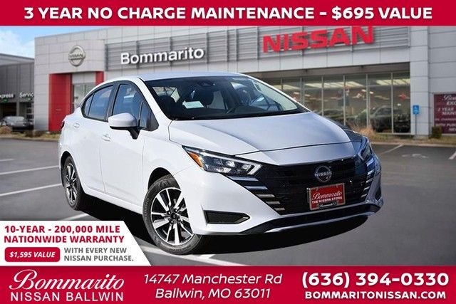 Pearl 2025 Nissan Versa 1.6 SV 4D Sedan FWD CVT 1.6L I4 DOHC 16V Shopping Bag Hooks, Trunk Net, Trunk Package. 32/40 City/Highway MPG Every New Nissan receives a 10 year/ 200,000 mile nationwide warranty and 3 years of NO CHARGE maintenance included! Visit Missouri's #1 Automotive Group for a better price and better service.