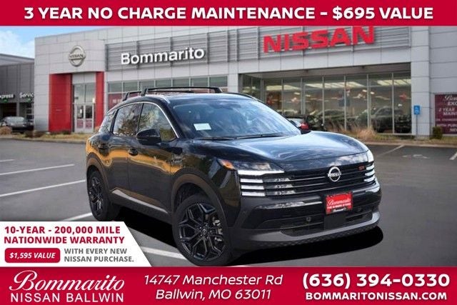 Super Black 2026 Nissan Kicks SR 4D Sport Utility AWD CVT with Xtronic 2.0L DOHC Bose 10 -Speaker Audio, Cold Weather Package, Driver Seat-Mounted Supplemental Air Bag, Heated Front Seats, Heated Mirrors, Heated Steering Wheel, Panoramic Moonroof, Rear Floor Heater Ducts, SR Premium Package. 27/34 City/Highway MPG Every New Nissan receives a 10 year/ 200,000 mile nationwide warranty and 3 years of NO CHARGE maintenance included! Visit Missouri's #1 Automotive Group for a better price and better service.